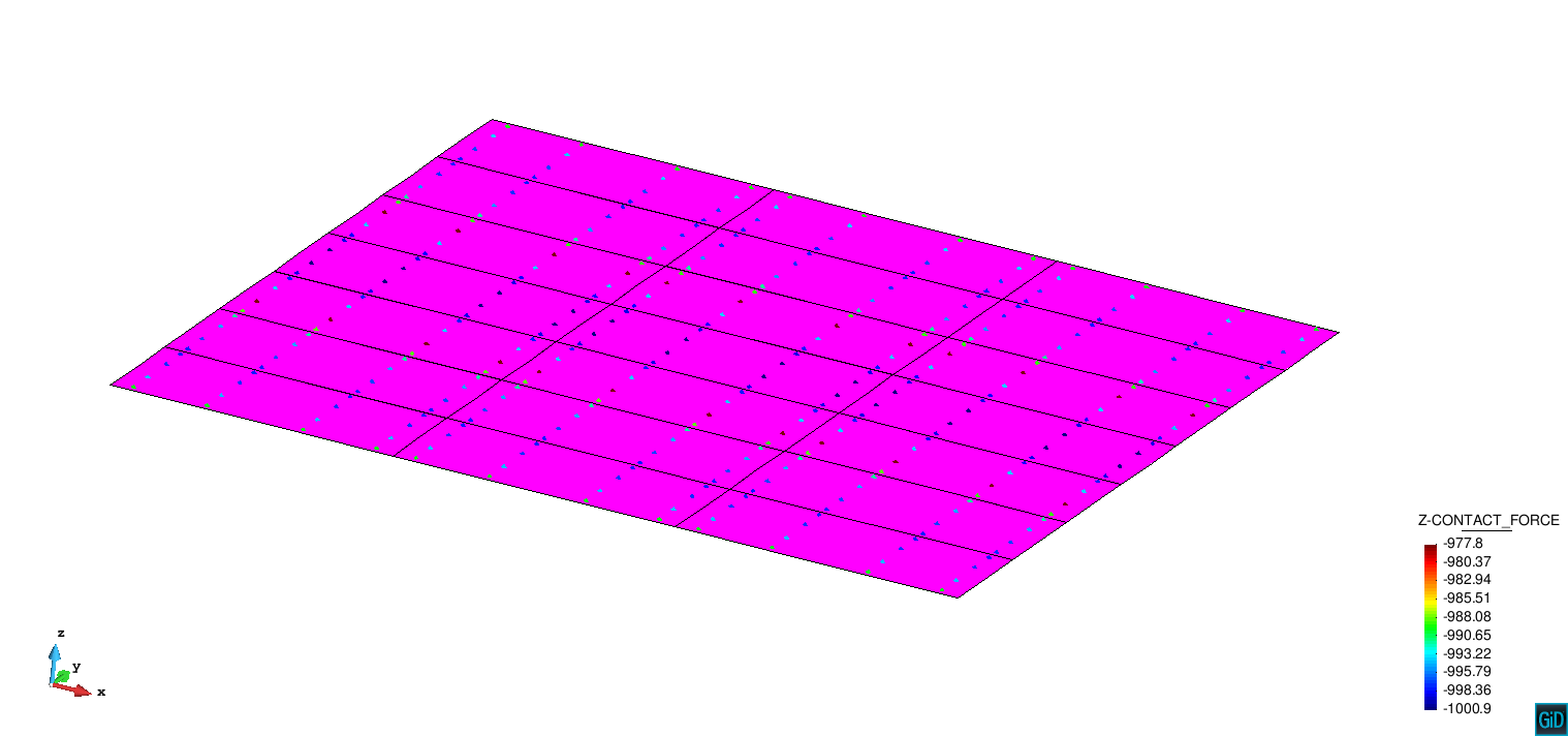 Then GiD is not able to represent a contour fill on the quadrilateral domain. It will only represent it with a sphere located on each gauss point painted with the color on this location. You can set a scale factor for the radius of these spheres, to be able to see the color.