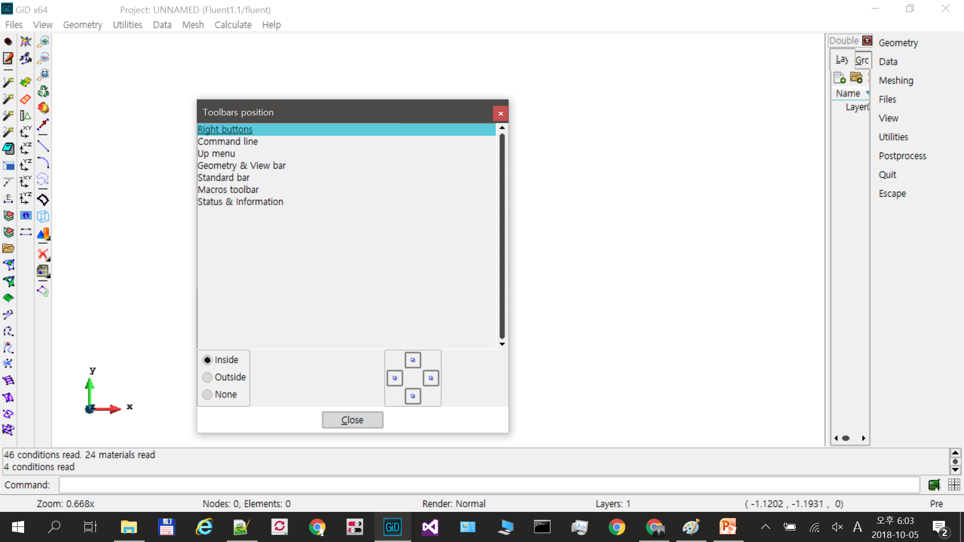 If GiD is starting without menus, delete the user preferences file, to restore the initial defaults:
