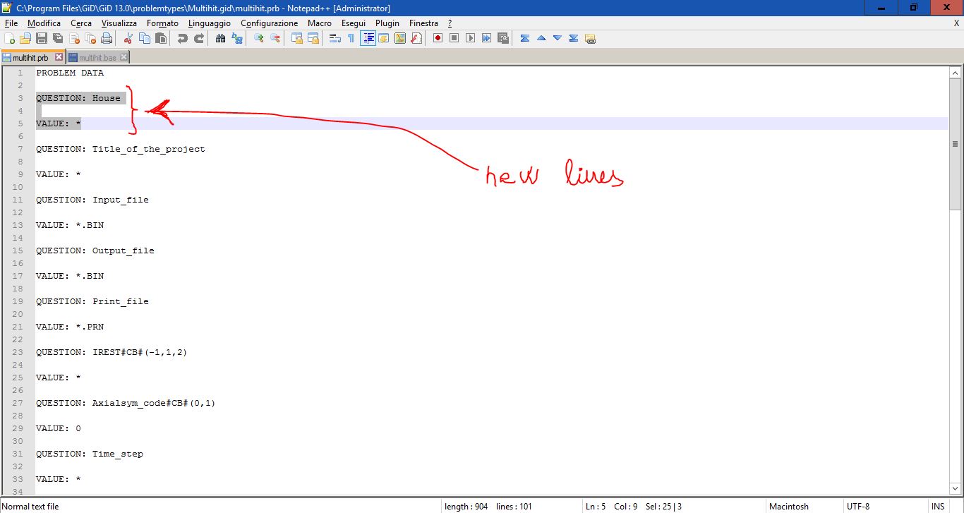 I want to modify an existing and working problemtype. I try to do it but I have some trouble. In particular I modified the .prb file simply by adding these two lines under the PROBLEM DATA statement: