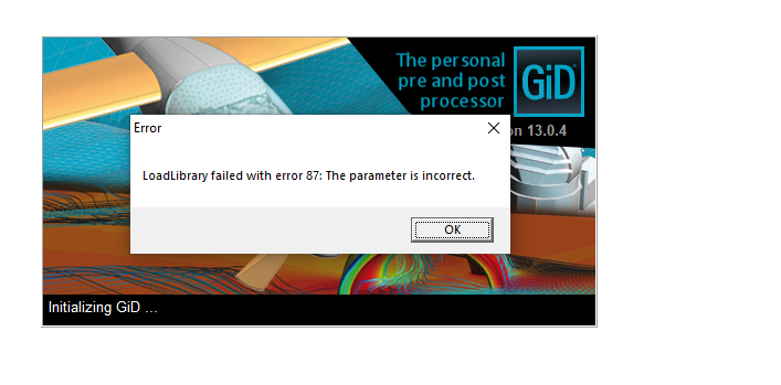 I am getting the error attached when I am starting the GiD software. Kindly, could you advise on this?