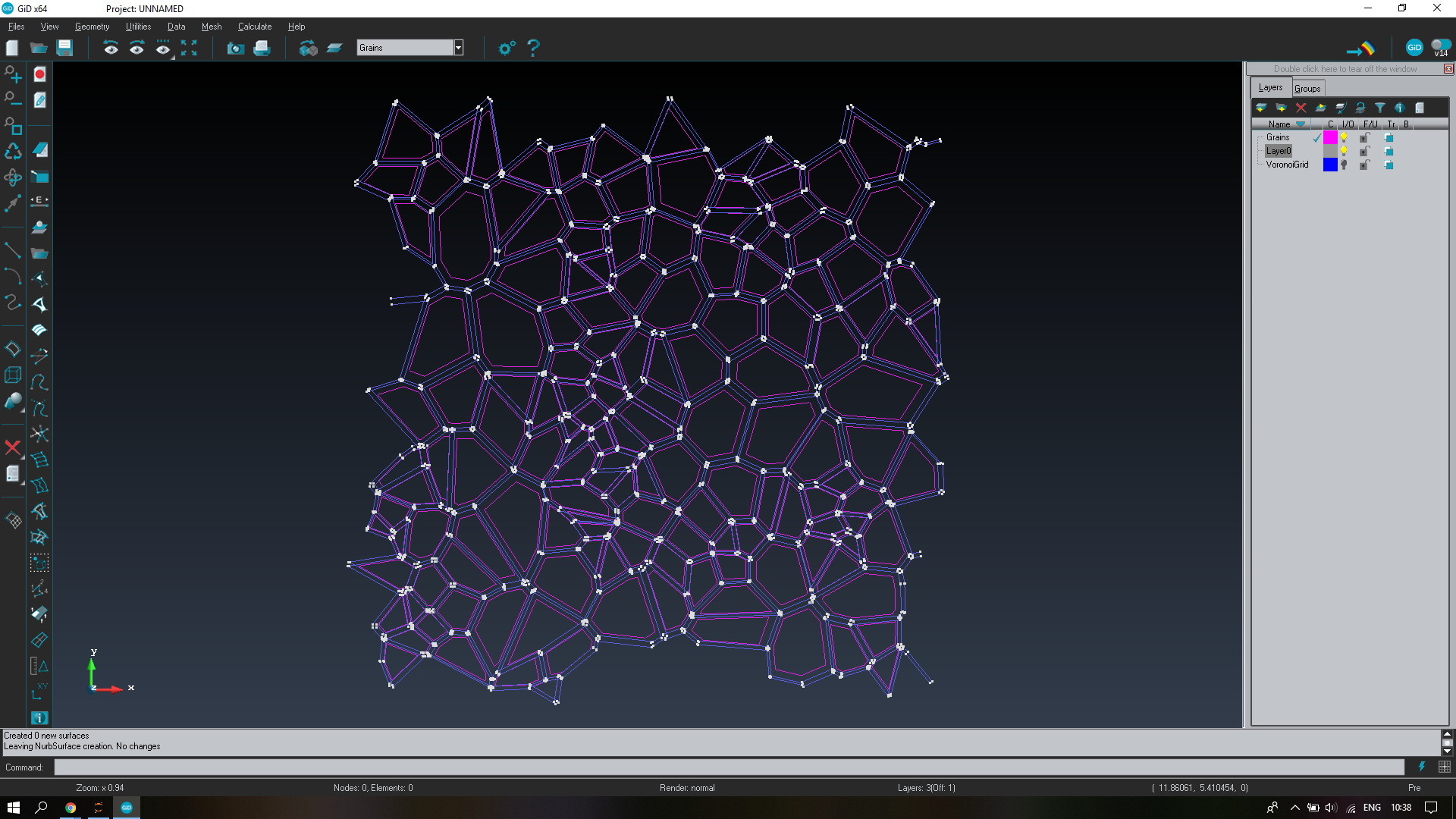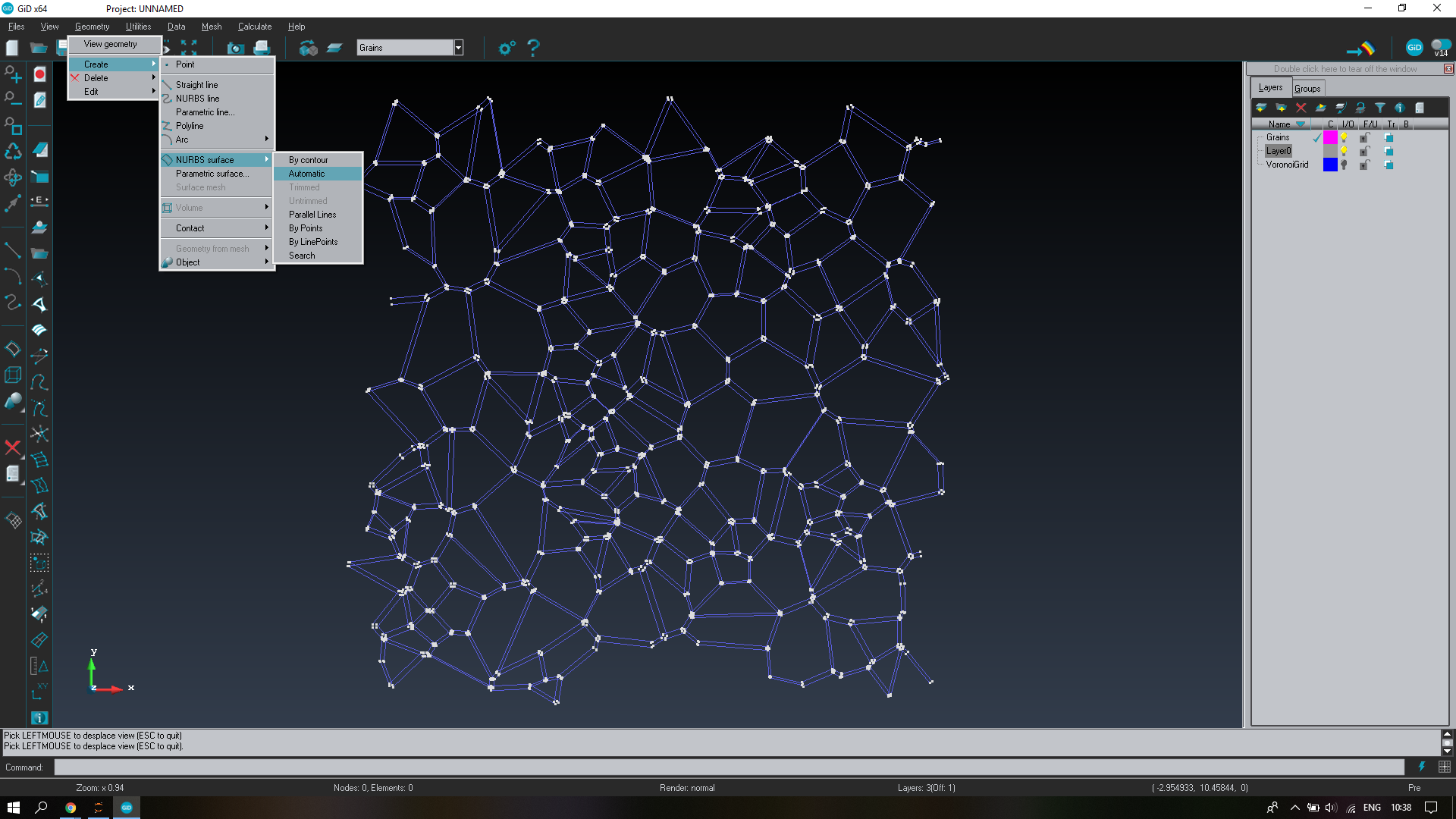 I already have a batch file that creates the Voronoi grid and I know how to use it. However, when it comes to this specific command, i.e. “Geometry Create NurbsSurface Automatic” the Dialog Window still pops up and you have to click cancel to finish and exit. And specifically this (how to exit the Dialog window) through a batch file is what is causing me problems, since I cannot find a command that would do that (the normal “Mescape” does not work).