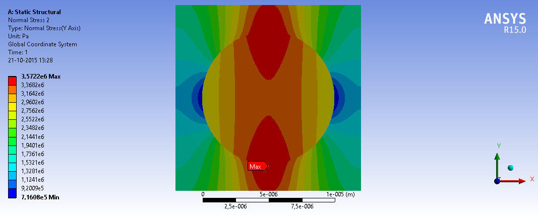 I’ve attached 2 images, one is the result I got plotting as usual in GID. The second is a result from ansys that shows the abrupt change that I want. The problem is circular fiber inside a square representative volume.