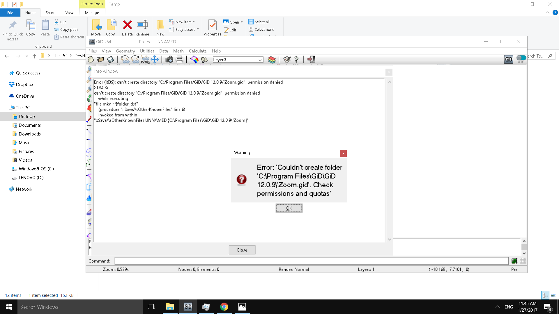 Error: 'Couldn’t create folder ‘C:/Program Files/GiD/GiD 12.0.9/‘Zoom.gid’: Check permissions and quotas’
